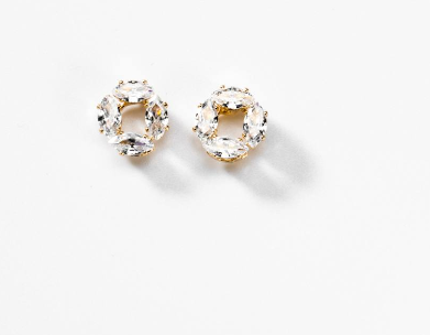 UncategorizedParure composée de clous d’oreilles et un collier plaqués or 24 carats: ils sont embellis par un cercle en zircons ovales incrustés à la main; le pendentif du collier est un cercle qui donne un effet de lumière vive.