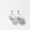 PENDANTS D’OREILLES PERLE ENCADRÉE EN MÉTAL RHODIÉ